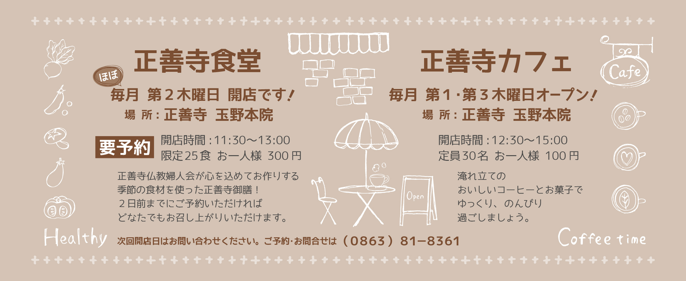 寺内においても9月より新しい取り組みを始めます。「正善寺食堂」と「正善寺カフェ」です。